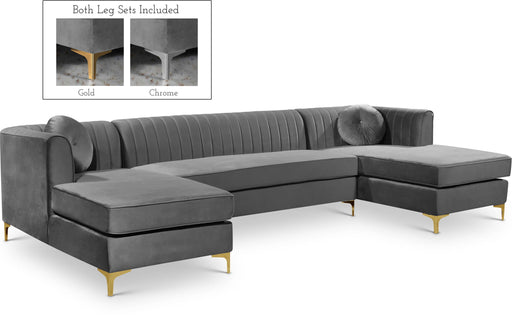 Meridian FurnitureSit back and get comfy on this velvet Graham sectional sofa. Plush velvet with a channel tufted back creates a contemporary display that is sure to...
