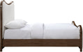 Sleek lines and soft curves come together in the Arvada linen textured upholstered bed, where soft neutral tones and a sculptural silhouette create a modern yet timeless centerpiece. Wrapped in rich linen and supported by a solid wood base in a brown walnut finish, this bed balances comfort and craftsmanship with ease. Perfect for adding a grounded, organic feel to any bedroom.