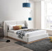 Add showstopping appeal to your bedroom sanctuary with this Jardin boucle fabric bed. Cream boucle fabric covers this bed's headboard and side rails, adding soft, sumptuous appeal to its allover aesthetic. The winged headboard is softly padded for comfort against your back and neck while you lounge around, reading or watching television. A natura oak finish on the solid wood base adds a distinctly sophisticated finish. Use this art-deco style bed with just a mattress if desired; box springs are not necessary.