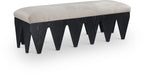 Bold and architectural, the Altair velour fur fabric upholstered bench combines avant-garde design with plush luxury. The seat is covered in soft velour fur fabric, offering an indulgent texture that invites you to sit and relax. Its distinctive rich black oak veneer wooden base, featuring sharp, angular legs, brings a sculptural, modern touch to any room.