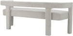 Get comfortable with this Athena bench featuring minimalistic design elements and a simple footprint. Artfully designed, this bench is made for comfort with a rounded footprint that hugs your back while you sit and relax with friends. The bench is covered top to bottom in rich boucle fabric, so it's super soft to the touch and elegant to the eye.
