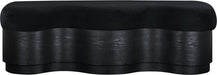 The bold and artistic Savoy velour fur fabric upholstered bench brings a unique wave-like design to your space. Plush velour fur fabric atop creates a soft, luxurious seating experience, while the sculptural wooden base in a rich finish adds a playful yet sophisticated touch. Perfect for those seeking to make a statement, it blends form and function, offering comfort and style in one eye-catching piece.