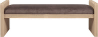 Transform your interior with the Sonia velour fur fabric upholstered bench finished in a rich natural wood finish, a harmonious blend of luxury and modern design. Ideal for enhancing the aesthetic of entryways, at the foot of a bed, or as a chic addition to your living room, this bench is as versatile as it is striking. It's the perfect choice for those seeking to add a sophisticated yet functional element to their home decor.