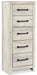 What a delightful take on rustic industrial style. Whether modern loft or modern farmhouse, this narrow chest makes itself at home. The wispy whitewash palette enhances without covering the grain for that weathered look you crave. Designed to accommodate smaller spaces, its linear profile and modern handles are a refreshing change of pace.