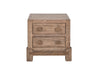 2 Drawer Nightstand. Bring the beauty of nature indoors with the Atenas Bedroom Set. Experience the harmony of style and functionality. Made from Mango and Melina wood, it features a multi-step lacquer finish that provides a smooth and polished appearance, making it not only aesthetic but also easy to maintain. The natural brown finish accentuates the wood's unique grain patterns, guaranteeing that each item is unique. The Atenas Nightstand features two drawers for ample storage. The simple wood-squared pulls on the drawers blend seamlessly with the overall modern rustic design. Standing on sturdy legs, this dresser provides stability and a touch of rustic charm, perfect for elevating any bedroom decor.