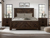 - Lightly distressed wood with a brown multi-step lacquer finish.