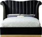 Make a dramatic statement while creating contemporary flair in the bedroom with this breathtaking Flora velvet bed. Featuring a metal base upholstered with rich velvet with nailhead accents and channel tufting along the headboard, this gallant bed is sure to command the attention of anyone who enters your bedroom chamber. Its contemporary wing-back design adds a regal presence to your sleeping space, while its generous size ensures you sleep like a.