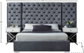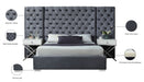 Rejuvenate your bedroom space with this Grande Bed. Svelte velvet covers each inch of this magnificently styled bed, lending it a bit of softness and glamour. The bold headboard is heavily button tufted for a regal and sophisticated look, and it's padded, so you can rest your back against it while you read or watch TV. The full-framed base is modish and sleek and provides sturdy support for the mattress of your choice.