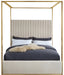 Dream big in the Jones velvet canopy bed. This handsome Meridian Furniture bed has a channel tufted headboard, giving the bed a regal and sophisticated look. The headboard is tufted for added elegance, and the bed comes with a brushed metal canopy, adding to its overall elegance and grandeur. Black velvet fabric used on the sides and headboard gives it a luxe vibe, and the headboard is heavily padded, making it an ideal backrest for reading or watching TV.