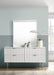Embody industrialist style with this Modernist mirror in a white medium gloss finish. Utilitarian but sculptural in design, this piece features a ridged, textured look that is chic but sleek. Combine this piece with other items in the Modernist lineup for a cohesive finish to your room makeover.