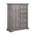 Combined todays modern lifestyle and traditional past with the Big Valley door chest. Crafted with rubberwood solids and wood products, this piece features 5 drawers and 1 door, bottom case dust proofing and fully stained interior drawers. The door opens to reveal 3 adjustable shelves, perfect for user customization.