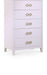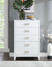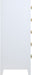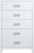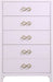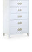 Bring unique elegance to your bedroom with this Bowtie chest from Meridian Furniture. This chest features five drawers, providing you with plenty of storage space for clothes, linens, or miscellaneous objects. Its light color adds a touch of femininity to your living space, and its brushed bow tie handles complement your existing decor. Its flat top is perfect for placing a lamp, framed picture, books, bric-a-brac, and more.