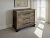 3 Drawer Chest. The Loft Brown Collection is constructed using pine wood that has been hand-stained and distressed, complemented by hand-forged iron hardware. This beautiful collection features a wide range of high and low finish colors, making it a striking addition to any room décor you choose to design.