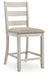This upholstered bar stool invites you to raise the bar on small space living. An inspired choice for coastal chic or modern farmhouse settings, this comfortably cushioned bar stool with classic ladderback styling sports a grayish white finish with rub through effect for timeworn appeal.
