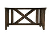 - Lightly distressed wood with a brown multi-step lacquer finish.