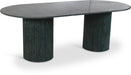 Step into luxury with the stunning Messina dining table. Its exquisite design and luxurious finish will instantly elevate any space. This beautifully crafted piece features genuine marble with elegant veins and fluted marble bases, perfect for adding a touch of flair and panache to any space. Embrace sophistication and timeless beauty with the art deco-inspired design of the Messina.
