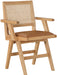 Sit back and relax in this armchair from Meridian Furniture's Abby collection. Featuring a frame crafted from solid wood with a natural finish and a vegan leather seat, this chair is both sturdy and durable so it will last you for years to come. A natural cane backrest seamlessly blends with the chair's natural-finished frame, adding a sense of warmth and charm that ensures it will stand out among all your furniture.