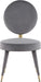 Give your dining area a chic touch with this Brandy velvet dining chair from Meridian Furniture. Featuring a rounded seat and rounded backrest, this chair brings an element of style to your dining table. Soft velvet upholstery makes this chair a luxury to sit on, providing softness and comfort while you eat breakfast, lunch, or dinner. Its brushed brass finish pops out from the the velvet upholstery, giving it a contemporary style that complements your home.