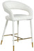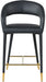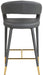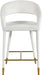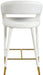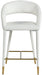 Settle in for a meal with friends seated in this Destiny stool. Soft upholstery makes this stool a sleek and inviting option for pairing with your favorite counter table. The rounded back adds comfort to mealtime and lends the stool a chic, eye-grabbing touch, while tapered legs topped with gold tips give the stool an elegant finish.