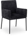 Casual comfort is the order of the day when dinner guests relax from the cozy confines of this Reeves soft chenille fabric dining chair. Sumptuously padded arms, back, and seat ensure total comfort from appetizers through dessert, and the neutral, solid-colored upholstered makes it easy to pair this dining chair with the table of your choice. An all-metal matte black frame and legs lend a contemporary finish and impeccable sturdiness and strength for long-term enjoyment.