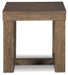 This designer end table makes it hip to be square. Bold, blocky profile is enriched with plank-effect styling and a textured grayish brown finish for a look that’s cool and contemporary and a vibe that’s warm and inviting.