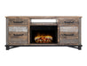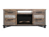2 Drawer 2 Door Fireplace TV Stand 70". The Loft Brown Collection is constructed using pine wood that has been hand-stained and distressed, complemented by hand-forged iron hardware. This beautiful collection features a wide range of high and low finish colors, making it a striking addition to any room décor you choose to design.