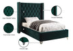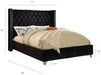 Elegant and eye-catching, the stunning Aiden Bed from Meridian Furniture is the perfect addition to any bedroom. velvet covers the deep tufted design. A beautiful wing bed design is complimented by hand applied nail head details. Strength and beauty is guaranteed with a solid wood frame and stainless steel legs.