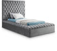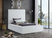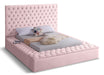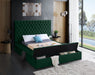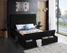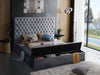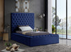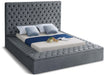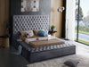 Extend elegance to the bedroom with this Bliss velvet bed. This bed has a rich look, with deeply tufted upholstery along its upper platform perimeter and headboard, ensuring that it is a good fit in modern bedroom themes. Storage rails and footboard are included to ensure maximum versatility, and the bed comes with slats, so you can use it without a box spring. The velvet fabric used in its design makes it easy to integrate alongside other furnishings.