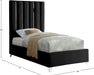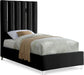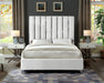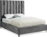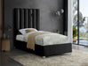 Create a bold yet welcoming sanctuary in your bedroom with this Enzo Bed. The channel design features velvet fabric upholstery for a sleek, glamorous look. The legs provide support for the plank-style base, ensuring durability and long-lived beauty. slats are included, making setup easy and quick. No box spring is required with this bed, so you can use it with your choice of mattress.