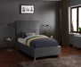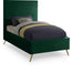 Embolden your bedroom space with this beautiful and colorful Jasmine Bed. A pop of stunning color and chic, sleek velvet upholstery set this bed apart as a distinctively elegant option for your bedroom sanctuary. The contemporary design meshes well with modern decor, making it the ultimate choice for the uber-modern home. Metal legs with a retro slant lend this bed a finished look. Because the bed requires no box spring or foundation, it offers a svelte, minimalist profile.