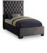 Make the Lexi velvet bed part of your dream bedroom setup. This bed has all of the bells and whistles you want, including a super tall headboard that stands nearly five-feet tall. The bed is covered in velvet fabric for a luxe look, and it's deeply tufted for added luxuriousness. The headboard is soft and welcoming against your back and head as you read or watch TV in bed, and the bed rests on legs for dependable sturdiness and durability. Use it without a box spring or foundation, since the slats are included.