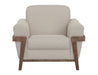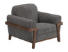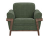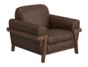 Wooden Frame & Base, Armchair. Introducing our captivating Loft Brown Collection, where traditional design seamlessly merges with mid-century modern details in this stunning transitional piece. With its distinctive exposed pine wooden legs and frame, retro-inspired rolled arms, and meticulous craftsmanship, this collection features solid wood and 15mm-thick, 5-layer plywood construction, ensuring both the strength and durability of the frames.