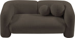 The Emory Loveseat draped in the rich boucle fabric is a sight to behold. Its captivating elegance is matched only by its comfort, making it the epitome of style and relaxation. The texture of the fabric adds depth and dimension to the loveseat, making it a stunning addition to any room. With its sleek design and cozy feel, the Emory Loveseat is the perfect place to unwind and indulge in a moment of pure luxury.