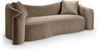 Indulge in pure luxury with the Destin velvet sofa, featuring plush, oversized cushions and soft velvet upholstery for optimal comfort. Wrap yourself in comfort with a structural masterpiece offering a refreshing yet timeless aesthetic. The organic curves and plush velvet create a truly unique and eye-catching design.