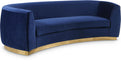 The perfect mix of velvet and stainless steel comes to life in your space with this Julian Sofa. This bold velvet sofa comes upholstered in rich, sumptuous-to-the-touch velvet to make a fashionable statement in your space. The curved back design lends it a modish touch, and the stainless steel trim around its base adds to its glitzy appeal. Stage this sofa alone or with other pieces in the Julian collection.