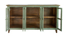 6 Glass Door Console. Introducing the Lima console, expertly crafted from solid pine wood. This accent console boasts a distinctive, clean-lined design, skillfully finished in a bold tone that elevates it to the status of a statement piece for your room.