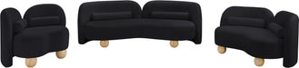 A cloud-like oasis of comfort, the Daphne velvet loveseat is a modern sensation. Its plush upholstery invites you to sink in and relax, while the curved design offers both support and opulence. The loveseat's unique silhouette is complemented by a choice of black or natural wooden legs, allowing you to customize it to your personal taste. Whether you're looking for a stylish accent piece or a comfortable spot to unwind, the Daphne loveseat is the perfect choice.