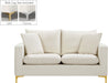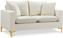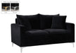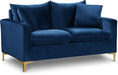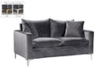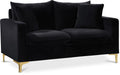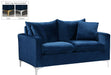 Curl up with a good book from the welcoming confines of this Naomi Loveseat. The color of this loveseat adds a bold touch to your decor and shakes up otherwise neutral color schemes. Plush velvet material feels cozy and comfortable against your skin, while deep seat cushions provide lots of room for you to stretch your legs. This loveseat comes with both and legs, so you can customize its look to meet your decor plans. Pillows are included for added homey warmth and comfort.