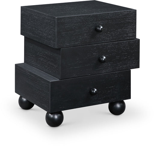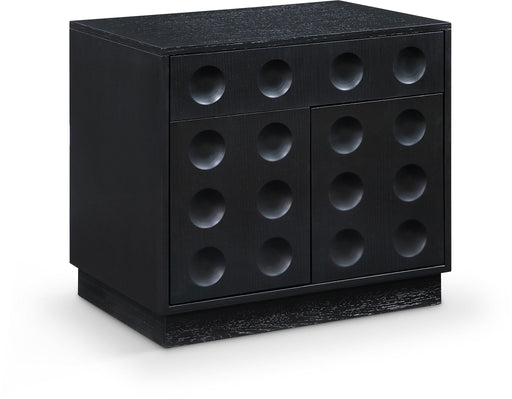 Indulge in the allure of the black Kaya Night Stand by Meridian Furniture. Its captivating design, luxurious finish and vegan leather handles will ...