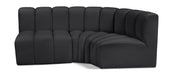 Unleash modern opulence with the Arc Vegan Leather Modular Sofa. Crafted for the modern connoisseur, this sofa injects an air of refined luxury into any space. Its sleek silhouette, upholstered in supple vegan leather, exudes timeless sophistication while the deep channel tufting adds textural intrigue, further elevating the chair's visual appeal. The modular design makes it a versatile chameleon, effortlessly adapting to your evolving needs and preferences. Whether you envision it gracing a chic living room corner, basking in the glow of a bedroom window, or adding a touch of drama to a home office, the Arc seamlessly complements your unique interior aesthetic.