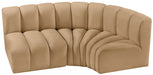Give your living room or den the perfect blend of style and versatility with this Arc velvet fabric curved modular sofa. Part of the Arc modular furniture collection, this sofa comes upholstered in rich velvet fabric and features deep channel tufting that adds a touch of luxury while enhancing comfort and support. A seamless combination of form and function, this chair can be used with other Arc pieces to create a myriad of configurations in your well-curated room.