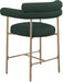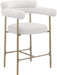 Chic is the word of the day when you give your kitchen counter or home bar a new look with this Blake counter stool. A curved back ensures body hugging comfort while sipping mimosas or chowing down on breakfast fare. The brushed brass iron metal frame provides reliable support for this counter height stool while the rich black buckle fabric upholstery and soft padding ensures comfort for all who decide to take a meal (or have a snack) with you.