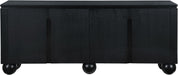 Transform your dining space into a haven of modern elegance with the Cardiff Sideboard Buffet. Featuring a rich black oak finish, it creates a sleek and modern aesthetic. Crafted mostly from solid wood with oak veneer made from rubberwood, as well as some parts made from MDF plywood, it boasts natural wood grain variation for added charm. This versatile piece serves as an elegant storage solution and a stylish platform for decorations. With doors designed to conceal cutlery, dishes, napkins, and dining supplies, it ensures your dining area stays organized and clutter-free. Elevate your dining experience with this handsome sideboard buffet that meshes practicality and sophistication effortlessly.