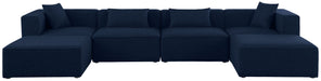 Cube - Linen 6 Piece Modular Double Chaise Sectional - Navy