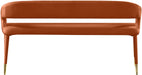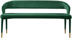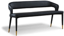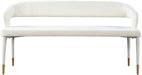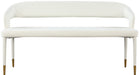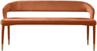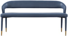 Enjoy extra seating space in your home with this Destiny bench. Its soft upholstery offers coziness while sitting, ensuring you and your guests are always comfortable. A rounded, open back provides additional comfort as well as style. Gold tipped upholstered legs give this bench an extra touch of style that complements any contemporary living space. Its long length guarantees that you ll always have extra space to seat family and friends who visit.