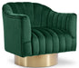 Get comfortable in this Farrah velvet chair. The chair's thick upholstery covers a premium foam design that makes it super comfortable while you read or watch TV. The upholstery matches other existing furnishings in your space, making it easy to integrate with other furniture. The chair sits on a base made from stainless steel for durability and long-lasting performance. The base swivels, sealing its reputation as the home's favorite seat.