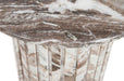 Brighten your domain with the Genoa brown toronto marble table, a stunning handcrafted piece made from genuine marble. This luxurious table features a beautiful wavy multi-colored pattern with brown and white that add depth and sophistication to any room. The fluted marble base provides a unique, textured touch, combining style and durability in one exquisite design.