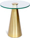 Catch the eye in an instant with this Glassimo end table. This beautiful table features an elegant design that's destined to garner its fair share of oohs and ahhs from everyone who sees it. The glass top allows full view of the brushed gold finish, making this metal table a show stopper from every angle. It's chic and sleek on its own, or pair it with the matching Glassimo coffee table for even more stares.