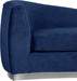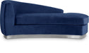 The perfect mix of velvet and stainless steel comes to life in your space with this Julian Chaise. This bold velvet chaise comes upholstered in rich, sumptuous-to-the-touch velvet to make a fashionable statement in your space. The curved back design lends it a modish touch, and the stainless steel trim around its base adds to its glitzy appeal. Stage this chaise alone or with other pieces in the Julian collection.