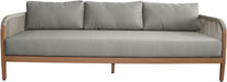 Make your outdoor oasis even more inviting with this Maui Water Resistant Fabric Outdoor Patio Sofa. Crafted with an aluminum frame to look like teak without the maintenance requirements, this sofa offers both style and convenience. Resilient fabric cushions, water-resistant and plump, have quick-dry foam inserts so you enjoy leisure time without worry. With its contemporary resort look, this sofa adds sophistication to any patio, porch, or deck setting. Embrace the essence of outdoor comfort and style with this elegant addition - your perfect companion for leisurely moments outdoors.